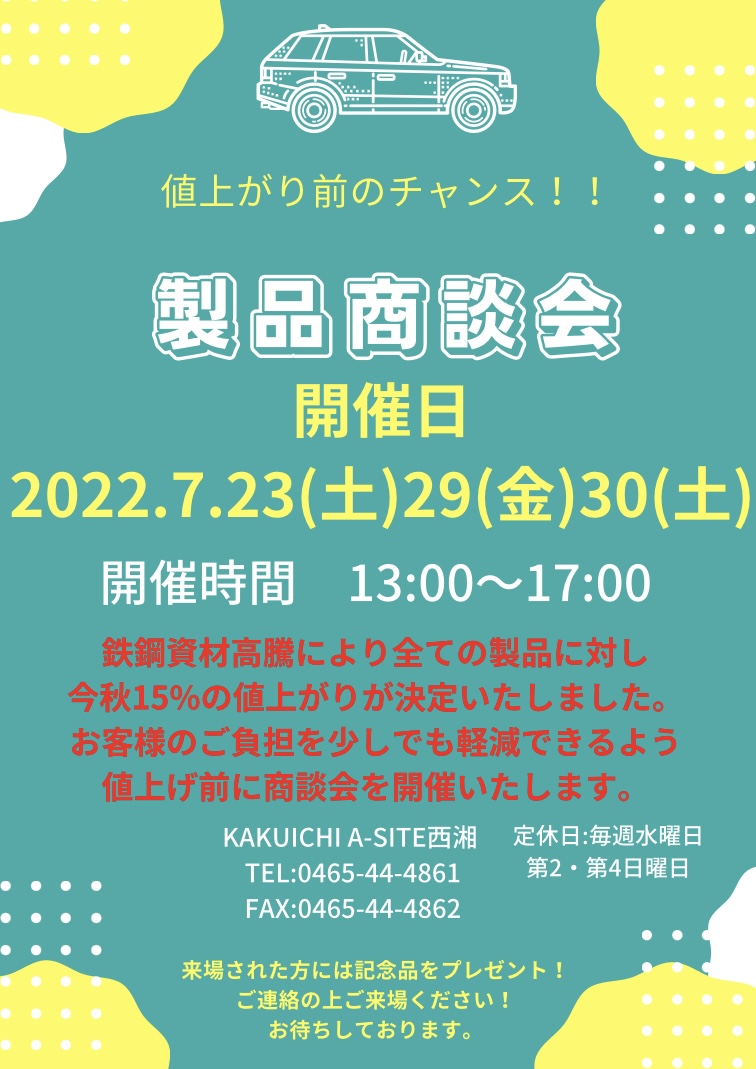 また、お客様にとって少しでもご負担が大きくならないようにお知らせとともに、製品商談会を開催することといたしました。
