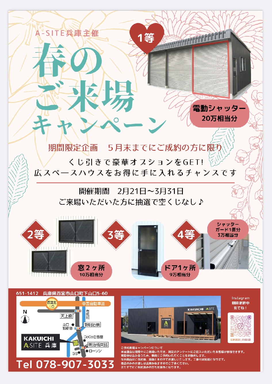 A-SITE兵庫 春のご来場キャンペーン開催!ぜひ気軽にお越しくださいませ