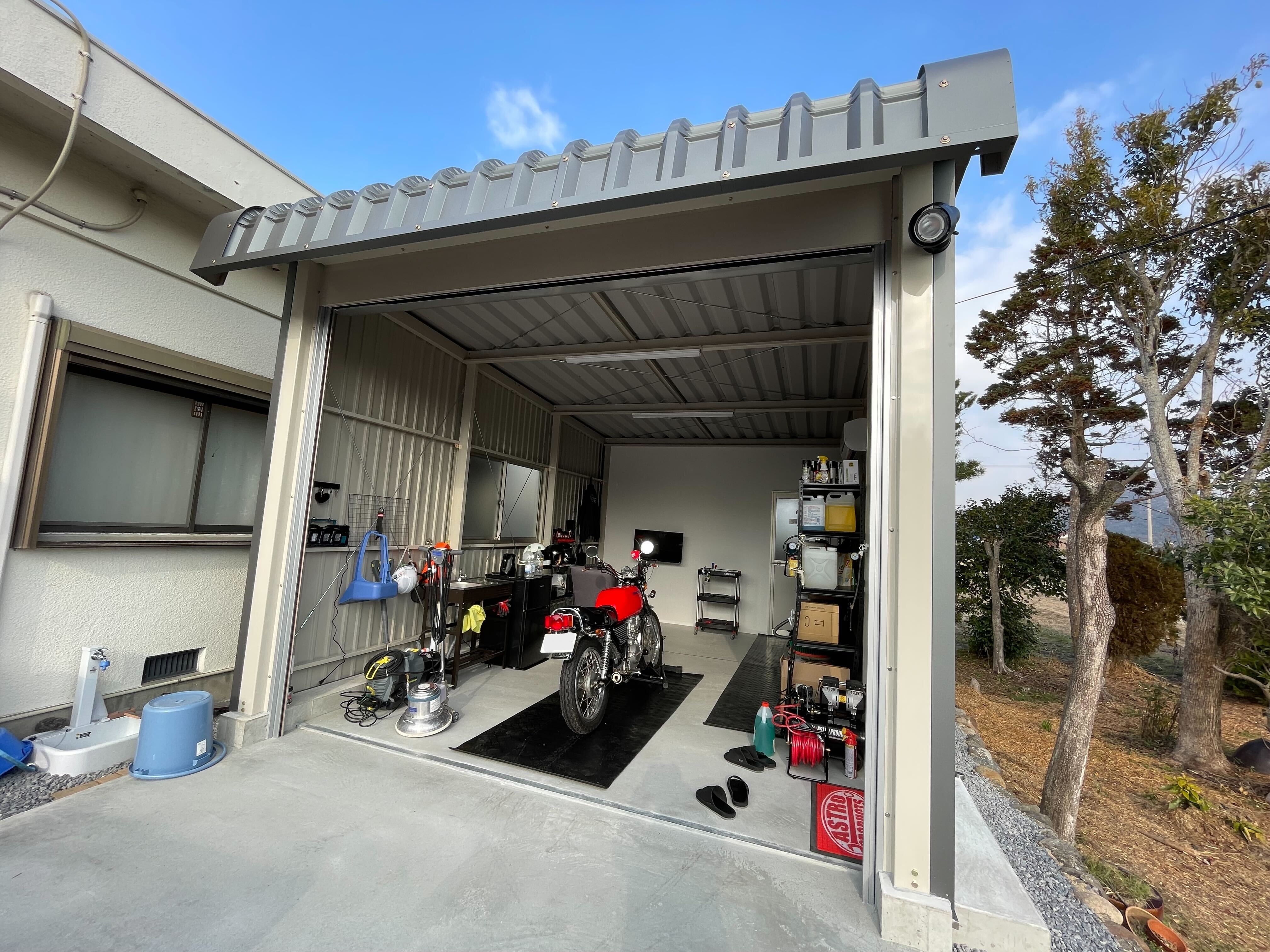 お客様がお持ちのバイクだけでなく、仕事道具なども余裕をもって収納できる広さです👍