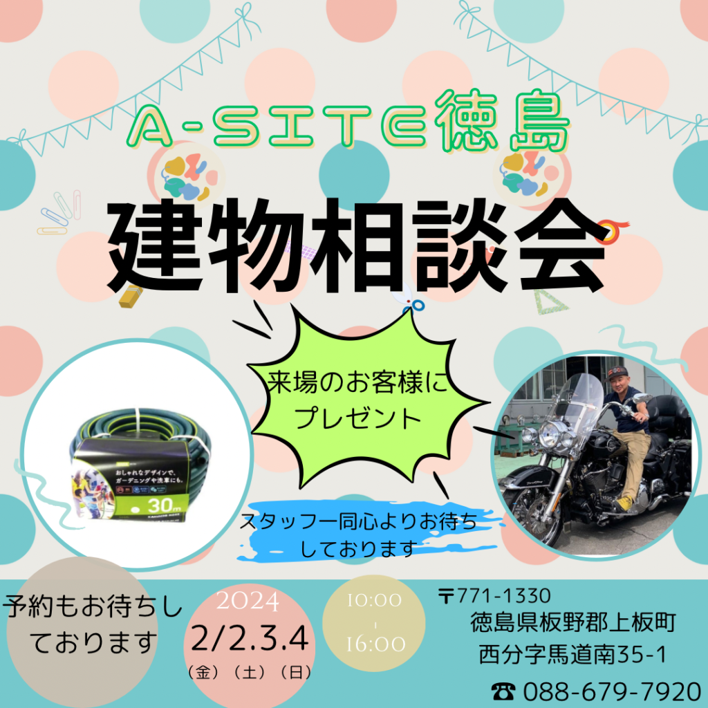 それでは、大切なお知らせです。2月2日・3日・4日の3日間開催の「建物相談会」のお知らせです。