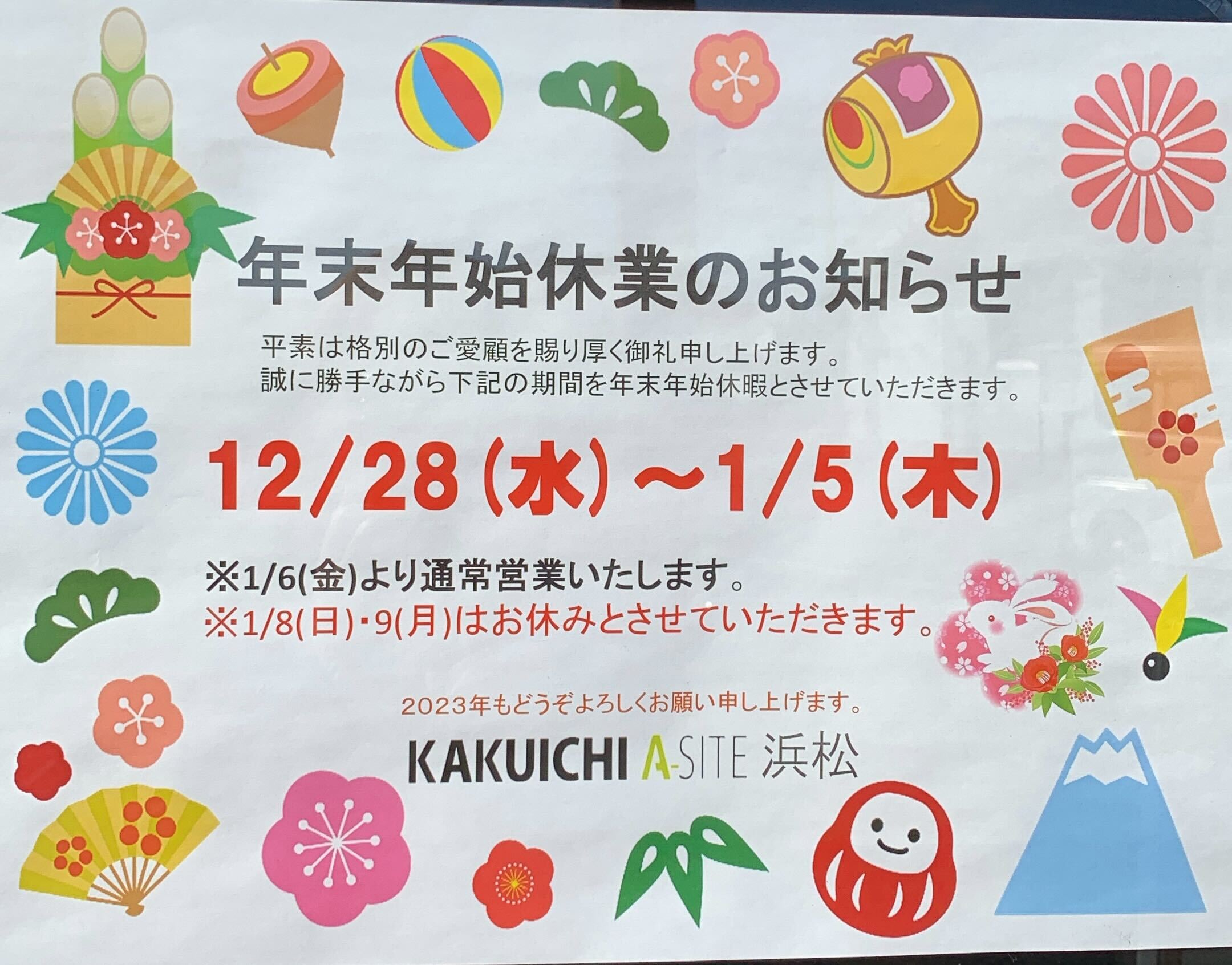 本年も株式会社カクイチA-SITE浜松店をご愛顧頂きまして誠にありがとうございました🧘☆