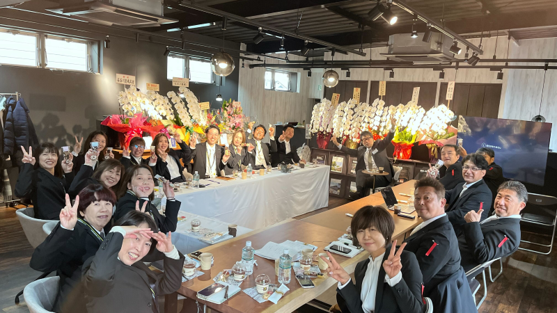 開設式を終えて、田中離有社長を囲み秘書さんと名古屋メンバーとの時間です☕🍰