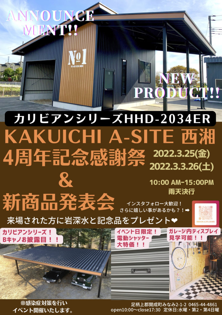 今日は、A-SITE西湘4周年感謝祭のお知らです。