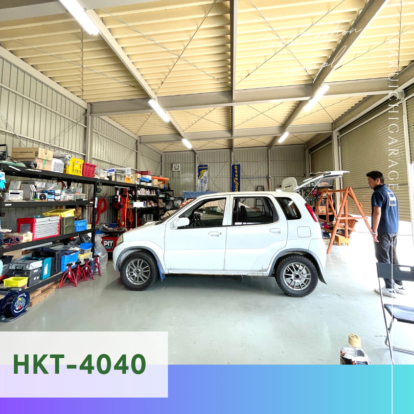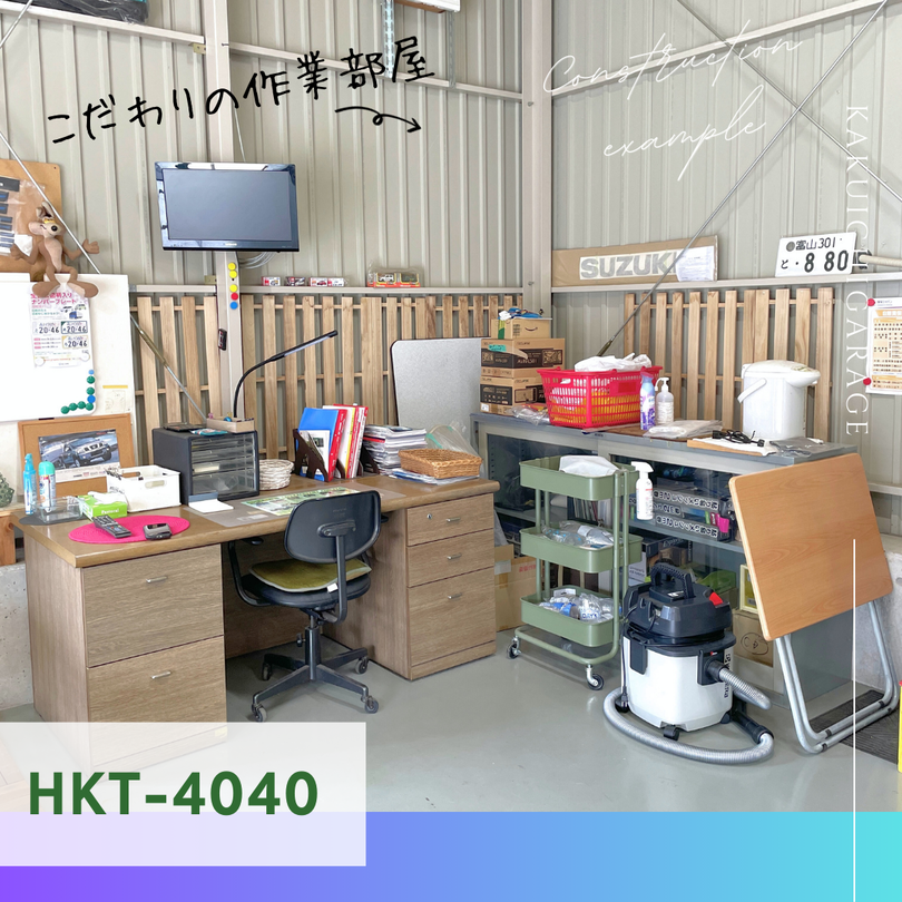 引違い出入り口部分の1スパンは間仕切りせず、デスクや来客用事務スペースに✨ 残り3スパンは車の整備・メンテナンス用にご使用です🚗👏