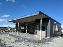 下妻市S様 広スペースハウスKSW-4031 施工例のご紹介です。オプション⇒屋根延長・前壁・間仕切り・土間用引き違い戸・窓・土間コンクリート農業用倉庫としてのご利用です。周りには農地が広がっていて屋根延長の広スペースハウスが堂々と建ってい...