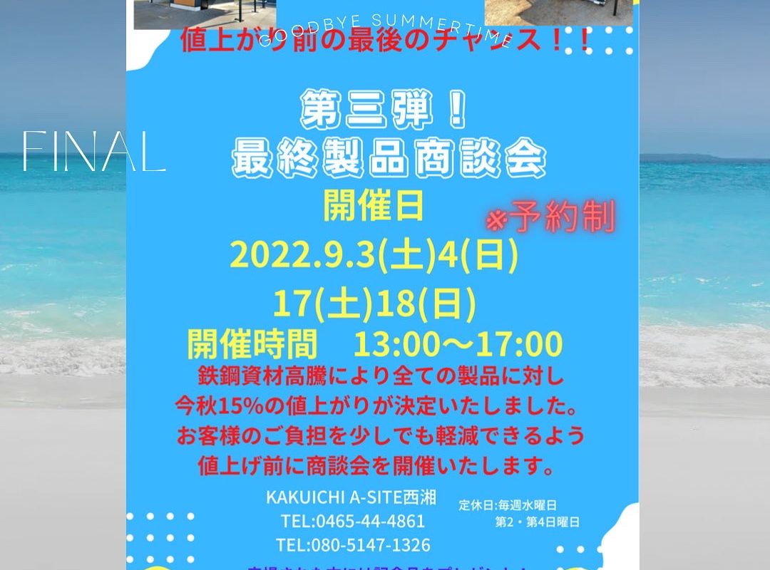 こんにちは!!カクイチA-SITE西湘 です🐥いつも見てくださり、誠にありがとうございます😊✨誠に勝手ながら、下記の期間を 夏季休業 とさせていただきます。📅 【夏季休業期間】2...