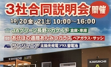 10月になりました。ようやく日中の暑さも和らぎ、過ごしやすい季節になりましたね😄 10/20(金)・10/21(土)の10:00〜16:00カクイチA-SITE長野にてJAグリーン長野主催3社合同説明会を開催いたし...