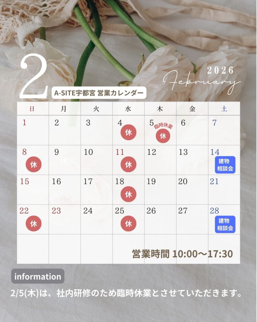 🌷宇都宮店🌷 2月の営業カレンダー・建物相談会のご案内 | カクイチ A-SITE