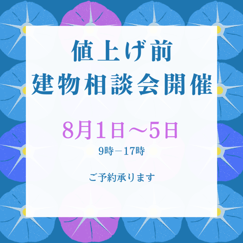 いよいよ値上げ前!!建物相談会開催のお知らせです