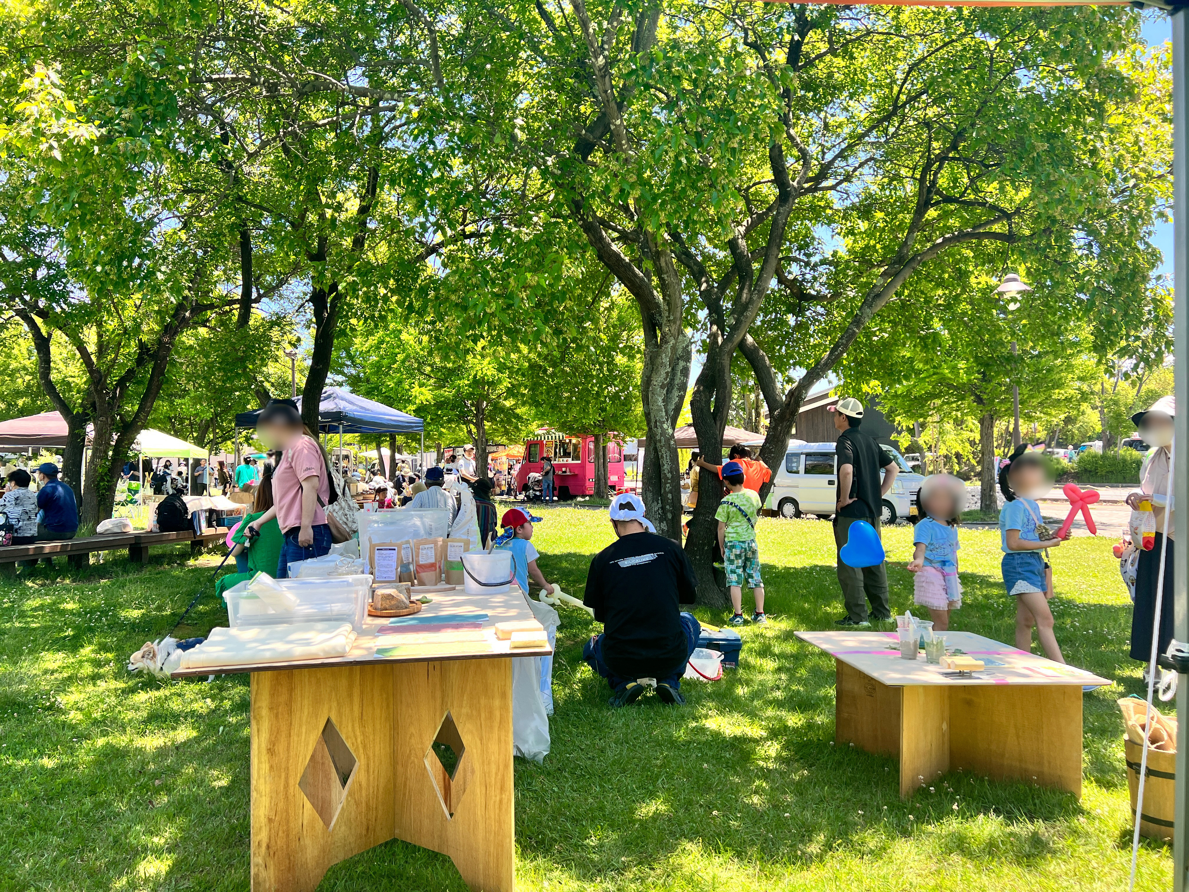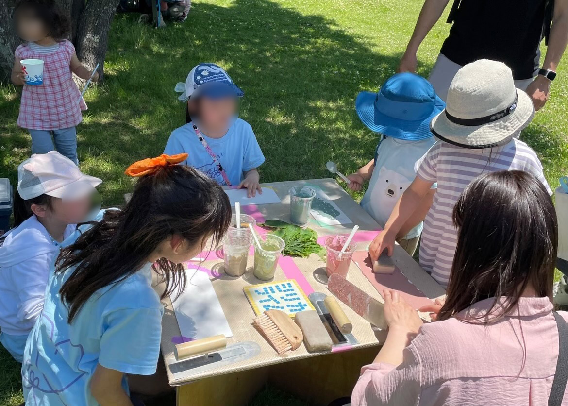 とっても良い天気でしたが、ブースの近くの大きな木のお陰で日陰ができ、青空教室のように自然を感じながらのワークショップ🌳