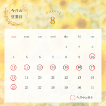 【 ☀️夏季休暇☀️ 】8月10日土曜日から8月18日日曜日までお休みさせて頂きます。19日月曜日から通常営業とさせて頂きます。Instagramこちらも是非👀本日営業...
