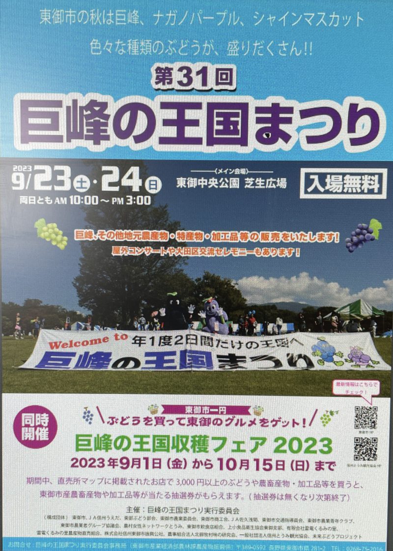 4年振りに東御市・JA信州うえだ主催の『巨峰の王国まつり』が東御中央公園芝生公園内にて