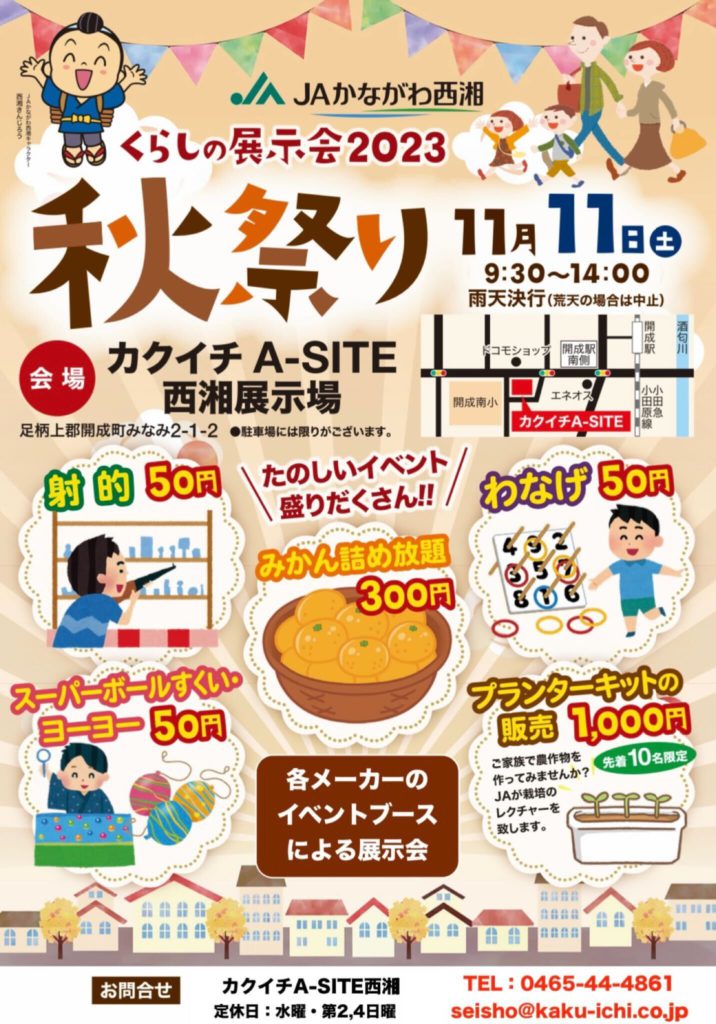 さて、11月11日(土)はカクイチA-SITE西湘にてJAかながわ西湘様とコラボイベントを開催いたします✨