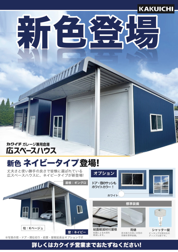 カクイチの広スペースハウスはカラーが6色あり、どの色にしようか悩むお客様でしたが、この秋に登場したばかりの新色=ネイビーを選んで下さいました