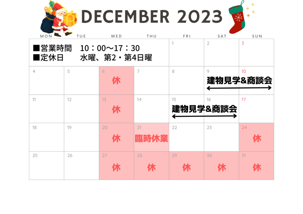 12月の営業カレンダー ※12/14更新あり | カクイチ A-SITE