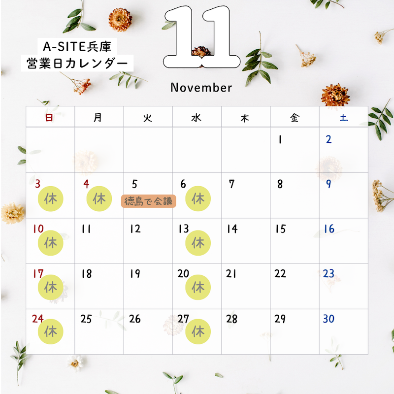 2024年11月の営業カレンダー カクイチA-SITE兵庫