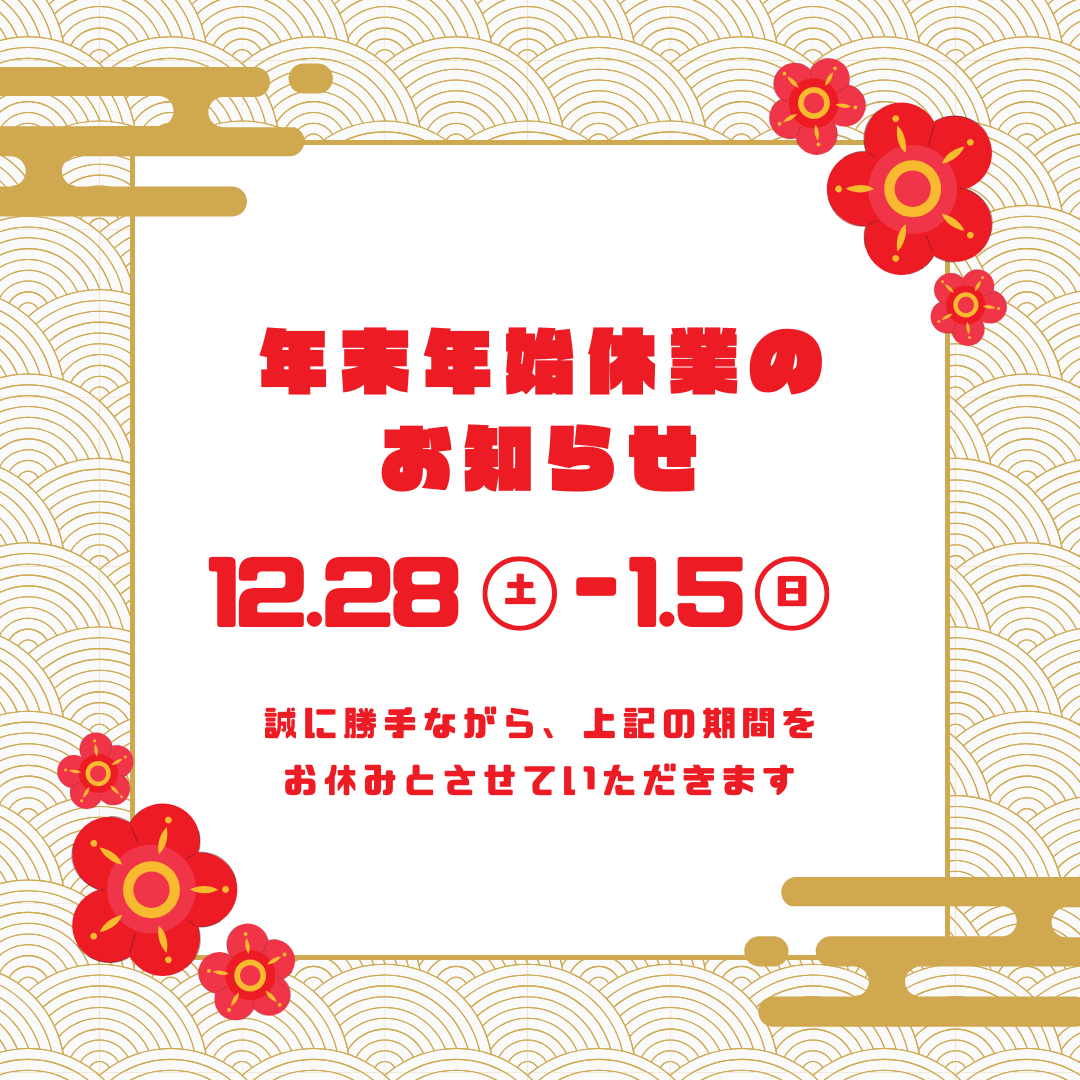 年末年始の休業日についてのお知らせのご案内でございます✨