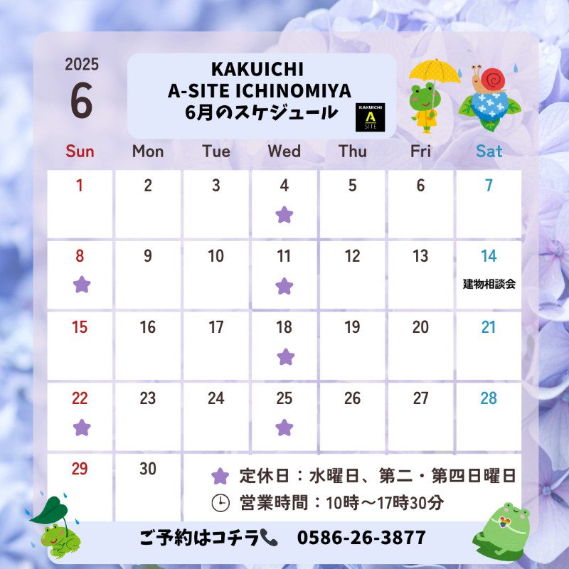 6月のスケジュール📅もう明日から6月!梅雨の季節☔早いですね~💦 | カクイチ A-SITE