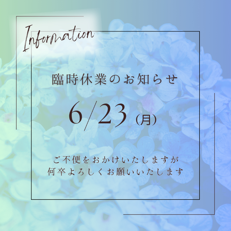 尚、6/22(日)も定休日になりますので、連休になります!