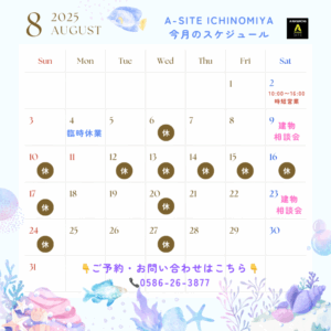 A-SITE一宮8月のスケジュールです📅