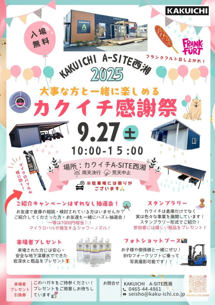 さて、9月27日(土)はカクイチA-SITE西湘で【第二弾!!7周年!!】感謝祭を開催いたします✨