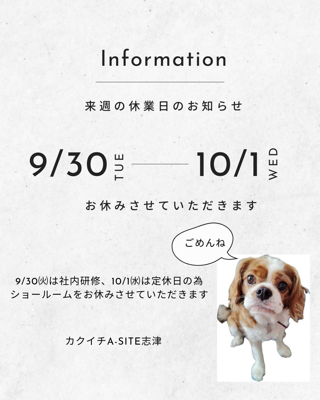 📅 9月30日(火):社内研修のため休業📅 10月1日(水):通常の定休日