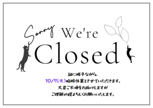 📢臨時休業のお知らせです!みなさまには大変ご不便をおかけいたします🙇