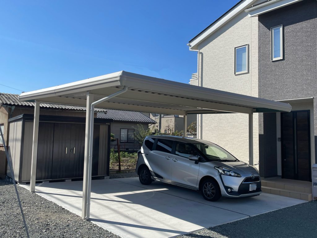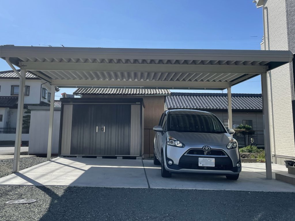 「自宅や、先に施工した物置ともマッチしていてとてもいい。これで雪が降っても安心。」とお喜びいただきました♡