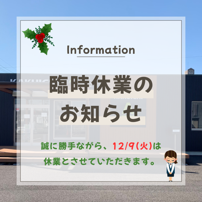 臨時休業のお知らせです🧑🎄ご不便をおかけいたします🙇