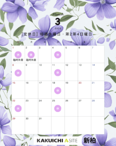 3月の営業日のお知らせです