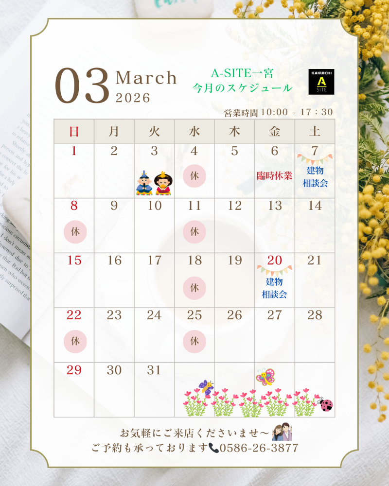A-SITE一宮よりお知らせ~🎎3月のスケジュールです📅