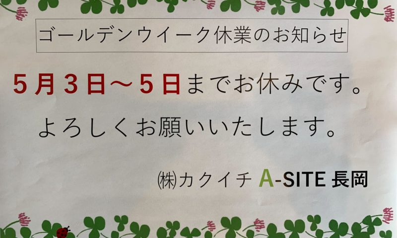 誠に勝手ながら下記の通り、ゴールデンウィーク休業とさせていただきます。