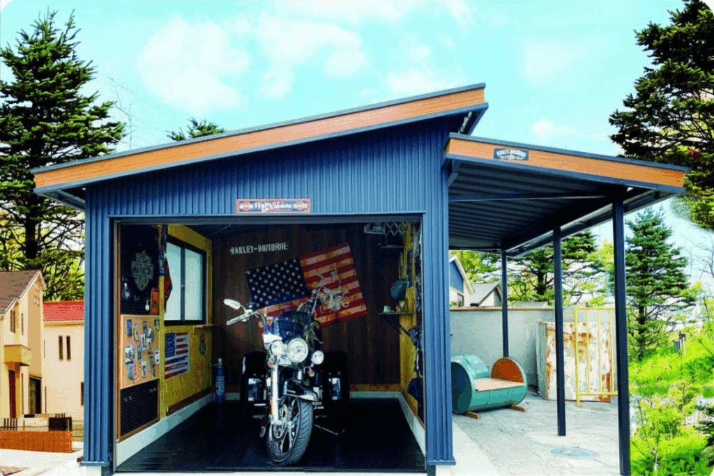 最近では、単なる車両保管場所としてだけでなく、ガレージを「自分の趣味を詰め込んだ秘密基地」として活用したいというお問い合わせを多くいただいております。今回は、ハーレーやアメ車、キャンプギアに囲まれた理想のガレージライフについて詳しくご紹介します!