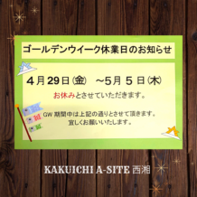 ゴールデンウィーク休業のお知らせ | カクイチ A-SITE