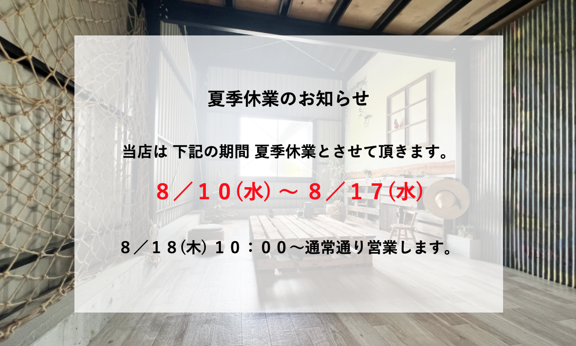 さて、8月に入り、当店も夏季休業を取らせていただきます。
