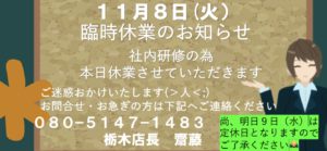 🙇‍♂️栃木店臨時休業のお知らせ🙇‍♂️