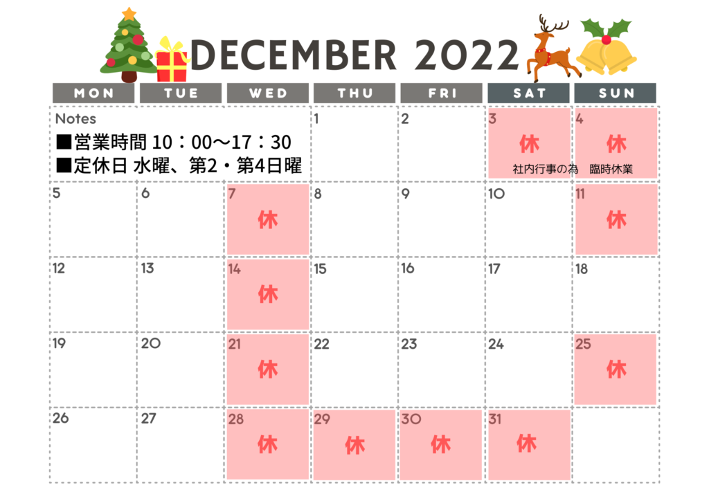 A-SITE鹿島神宮前店の12月の営業日のご案内です🎄🎅