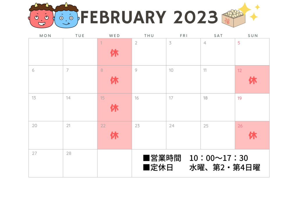 A-SITE鹿島神宮前店の2月の営業日のご案内です✨