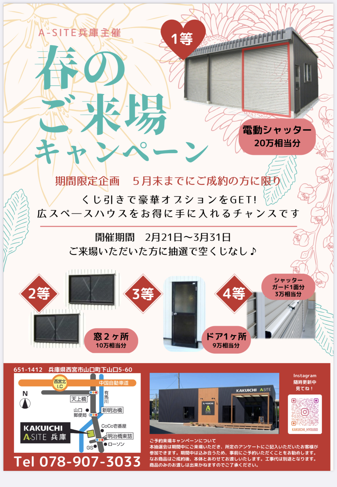 A-SITE兵庫 春のご来場キャンペーン開催!ぜひ気軽にお越しくださいませ