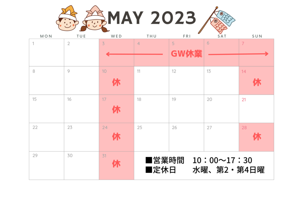 5/3(水)〜5/7(日)はGW休業とさせていただきます。