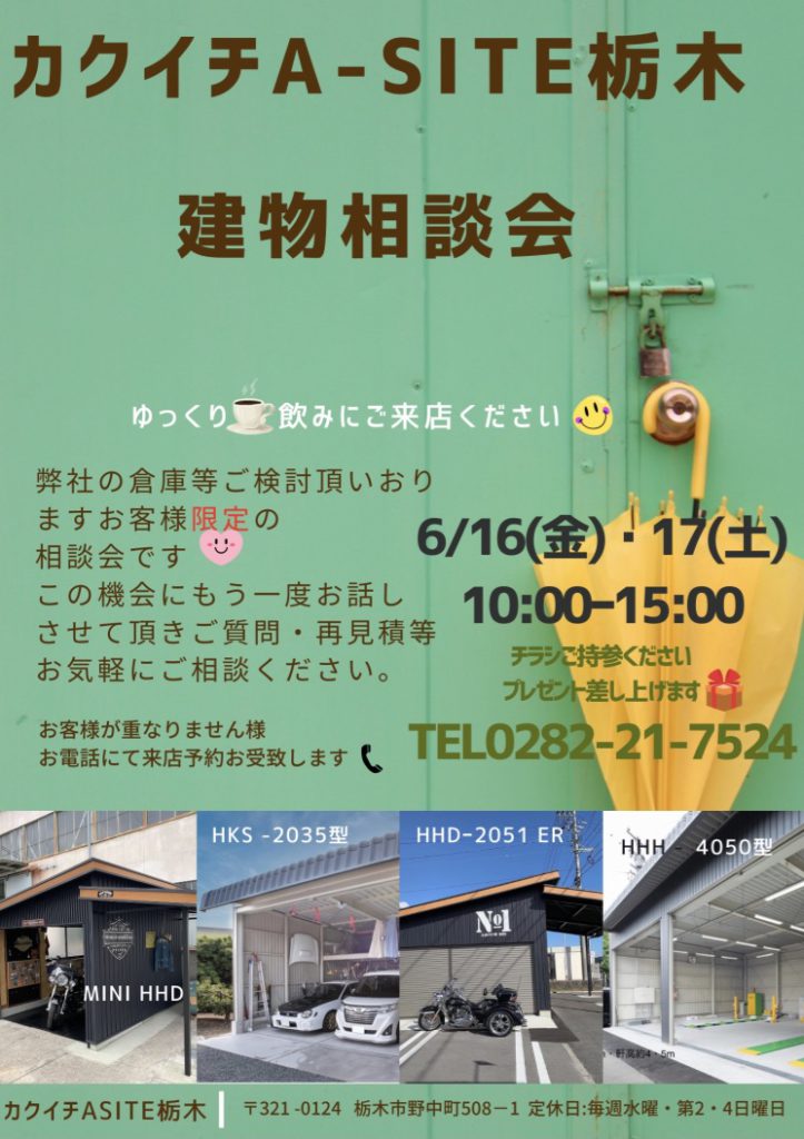 今月16日(金)17日(土) 10:00〜15:00 建物相談会を開催します😊 お電話にて来店予約も出来ます✨ ☎️0282−21−7524 この機会にお話させてください😊 ご質問や再お見積もりもさせて頂きます😊 🍀ご来店お待ちしております☕️