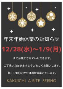 12月28日(水)~1月9日(月)までお休みいたします😭🤲