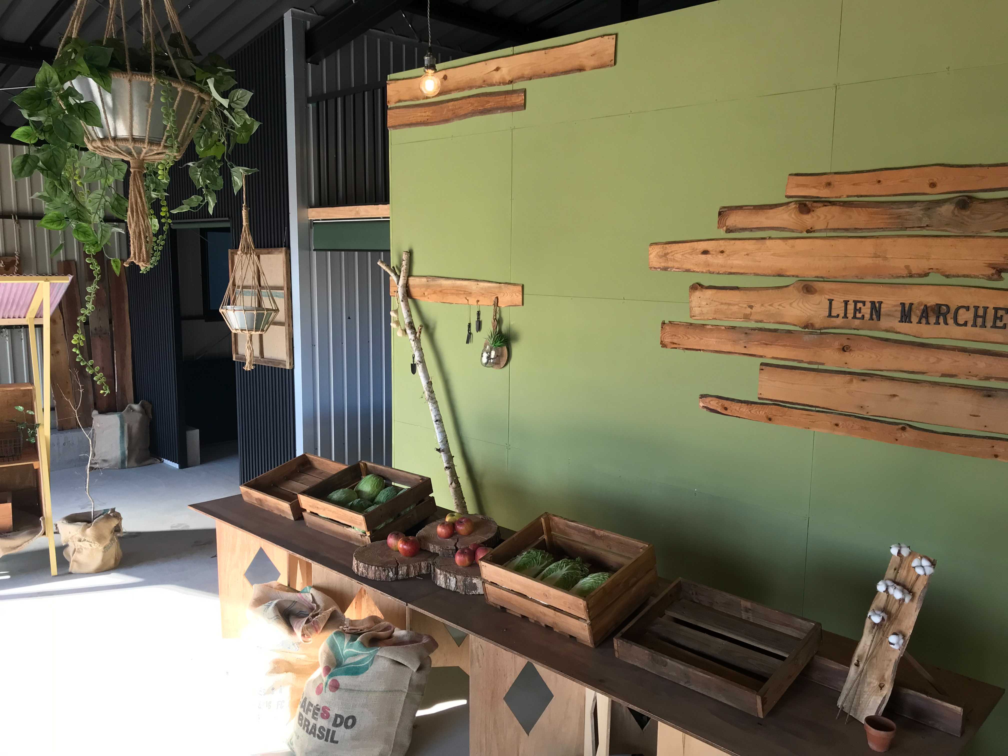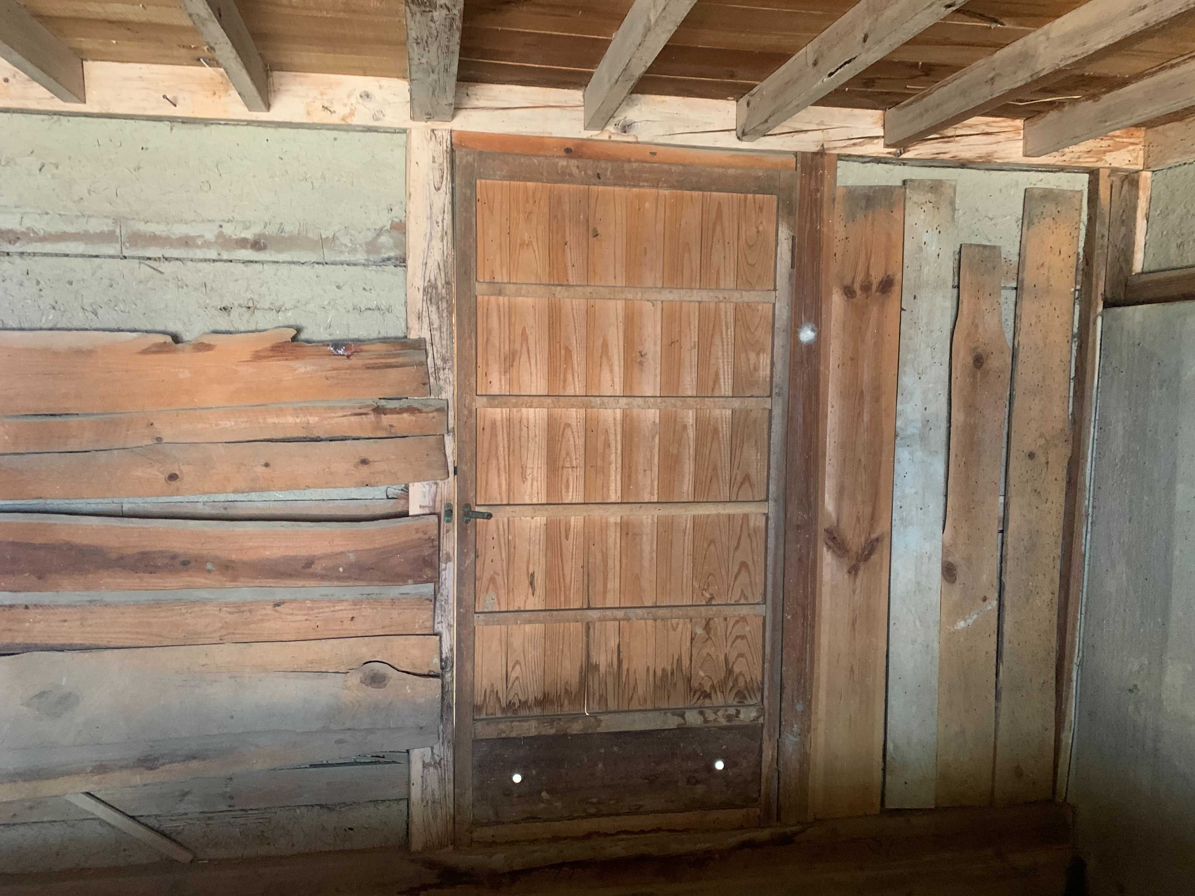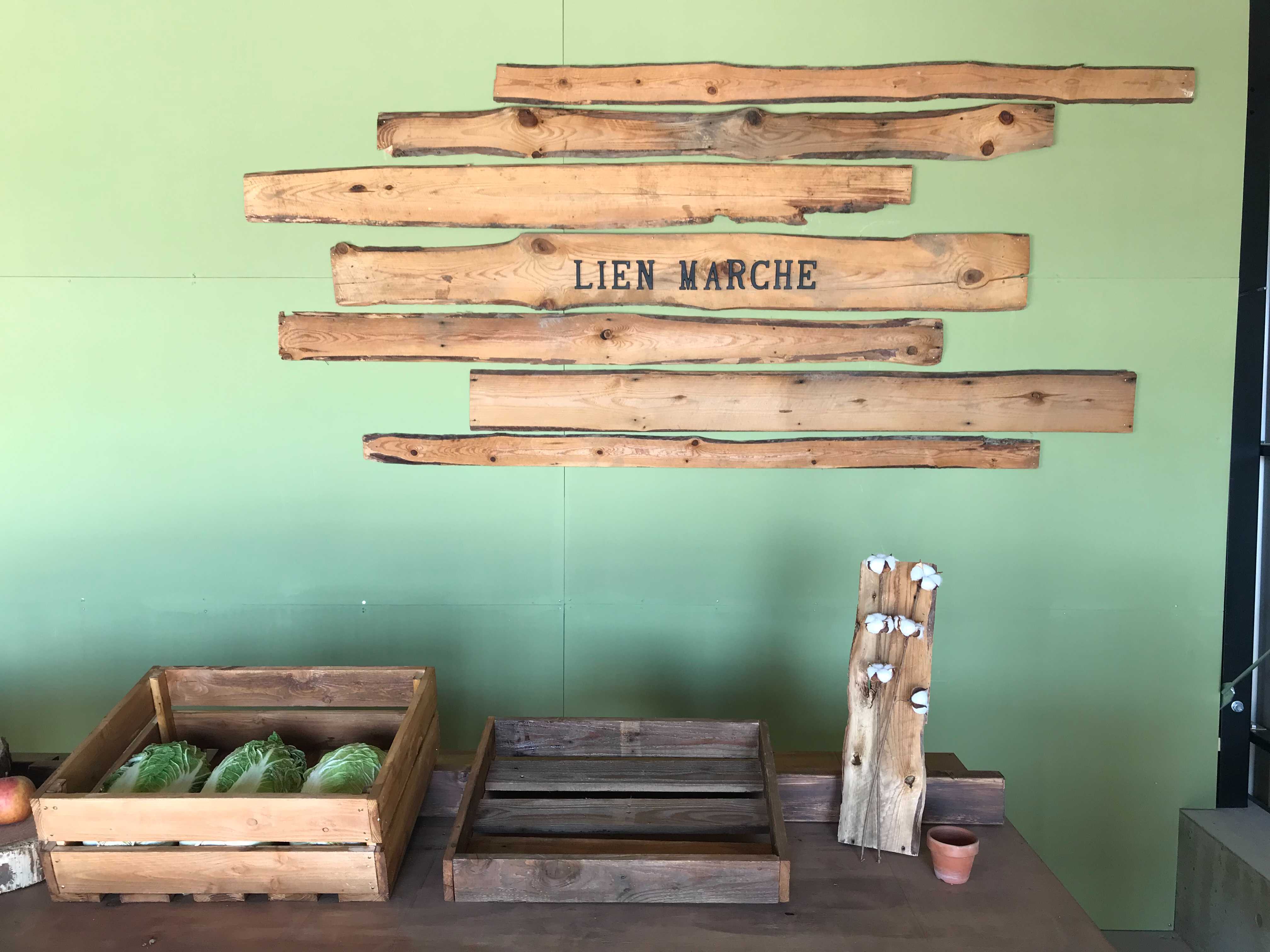 グリーンの壁に貼り付けられた板は、解体される納屋から貰いました。