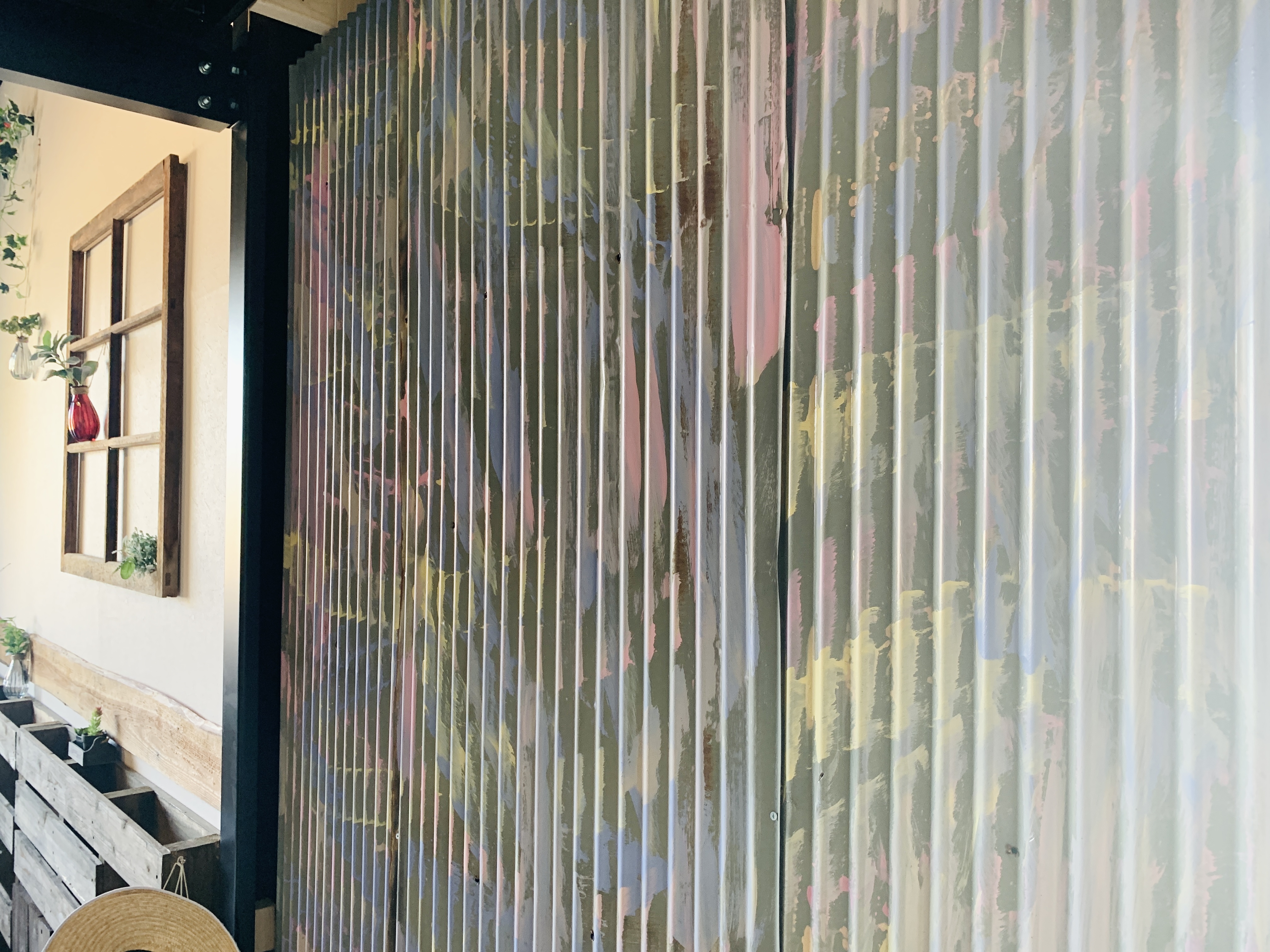 錆びたトタンにパステルカラーを塗ったらポップな壁に見えます♪