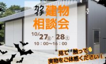 今日と明日の二日間🎃10:00~16:0010月カクイチ建物相談会を開催中❣倉庫やカーポートはもちろん、趣味のスペースや事務所、店舗の建物としてもカクイチの製品はご使用用途がたくさん!ご来場ご相談を頂いたお客様...