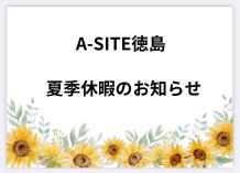 こんにちは😊A-SITE徳島ですm(_ _"m)本日は、夏季休暇のお知らせです。8/10(日)~8/17(日)までお休みいたします。8/18(月)から通常通り営業いたします。ご不便をおかけしますが、何卒ご理解の程よろしくお願...