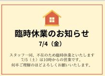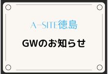 こんにちは😊A-SITE徳島です。本日は臨時休業のお知らせです。7/18(金)は、スタッフ一同不在のため、臨時休業といたします。ご不便をおかけしますが、何卒ご理解の程よろしくお願いいたします。