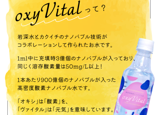 販売期間:8/1(火)〜8/30(水)オキシヴァイタルは 1ml中に充填時3億個のナノバブルが入っており、