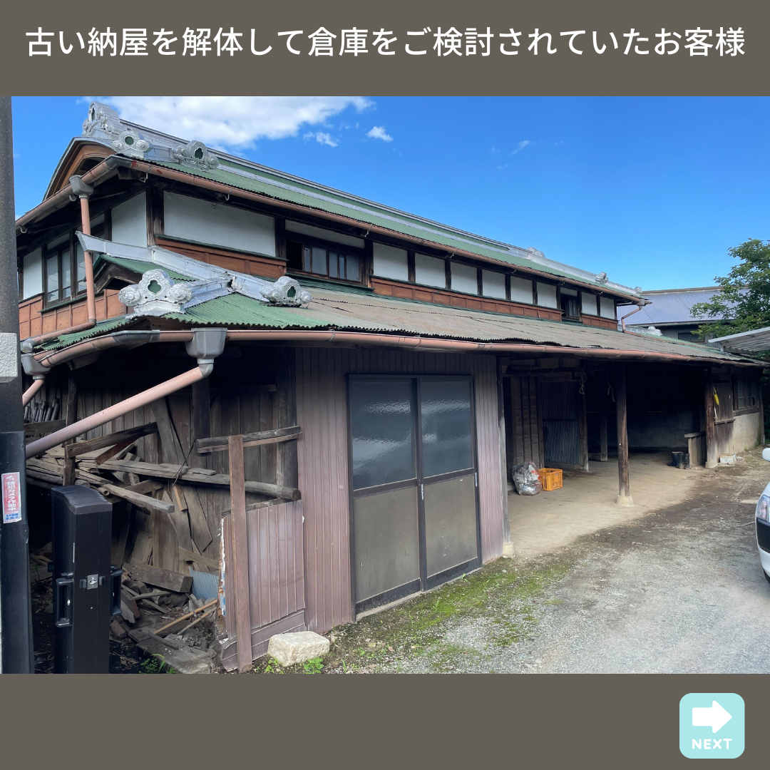 既存の納屋を解体して倉庫を建てたい!と、来場してくださったお客様。