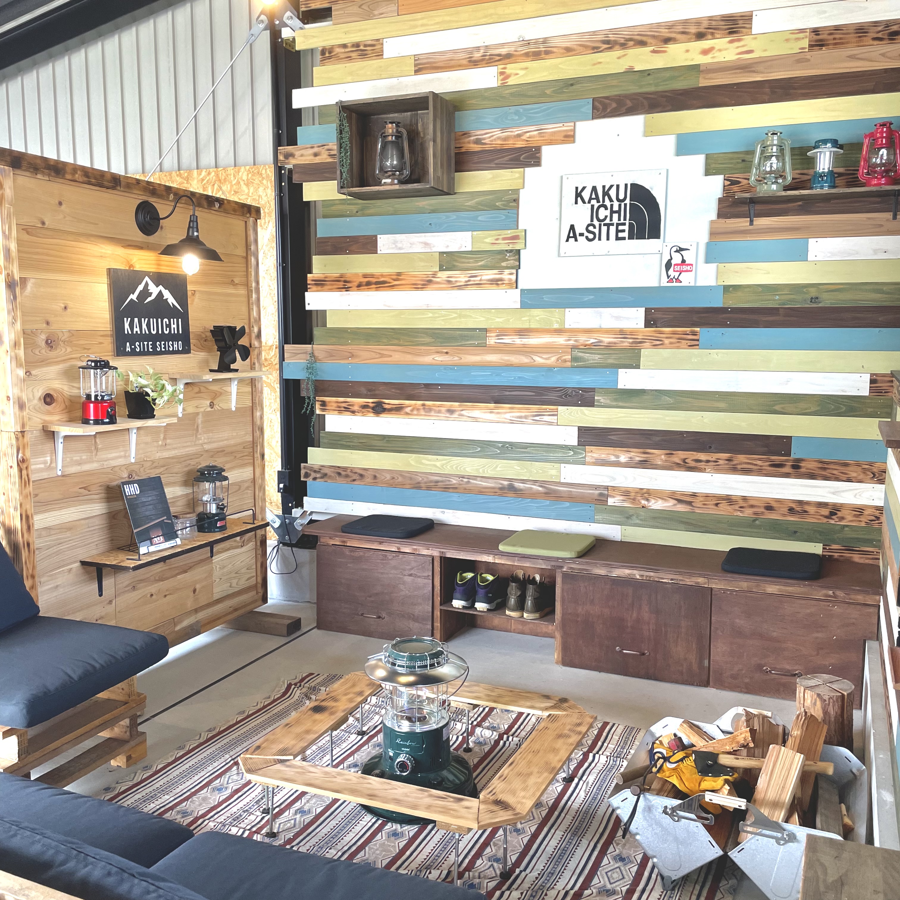 内装はキャンプとログハウスをイメージしたチルタイム空間となっております💪🏻